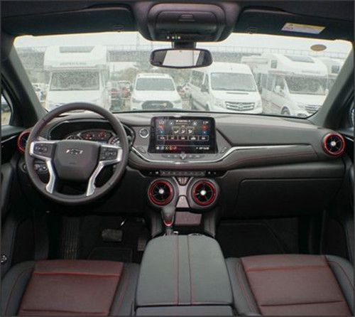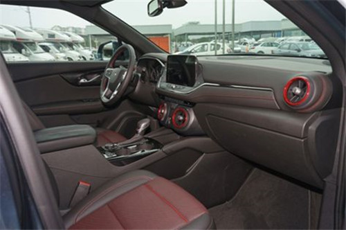 坐进开拓者车里,身高只有1.72m的小编,会觉得这车有点大,除了空间本身比较大之外,就是车里的好多“东西”都比较大。比如大尺寸中控屏、非常显眼、带外圈温度调节的圆形出风口,以及超宽的前排扶手箱,无不体现着一个“大”字。车里面大量的红色装饰件和缝线,让这款车的内饰充满了“战斗感”,让人坐上去,就有一种想要油门到底“崩”一下。