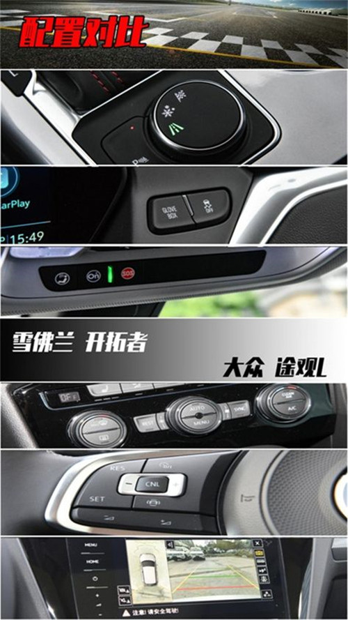 当然级别低一点、尺寸小一点的途观L,配置方面也是不含糊,售价25.58万的两驱顶配车型,拥有360度全景影像、自动泊车入位、电动感应后备箱、全功能正副电动座椅,配置也是相当丰富。当然大家也能看到,开拓者和途观L的配置偏重点不太一样,就看更喜欢哪种风格了!