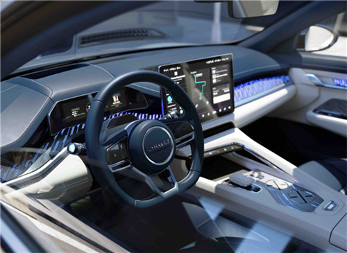 车身侧面,新车采用了溜背式设计,呈现出类似猎装车的风格。此外,该车还配备了隐藏式门把手设计和旋风式轮圈。车身尺寸方面,新车的长宽高分别为4850/1980/1530mm,轴距达到了2999mm。车尾部分,新车采用了贯穿式尾灯设计,灯带由两侧大灯一直延伸到中间的LOGO处,点亮后具有不错的视觉效果。另外,该车还配备了造型动感的后扰流板。