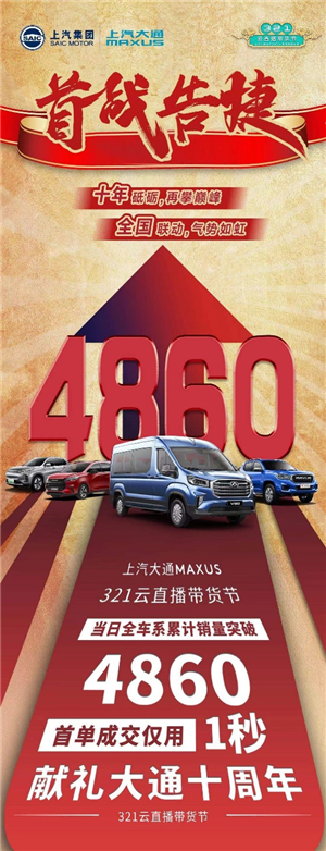 十年说长不长,说短不短,国内外激烈的市场竞争,早已让上汽大通走出了一条专属的“中国汽车定制专家”的发展道路,我们不必对它的未来担心。因为随着新车上市投放市场,上汽大通MAXUS“轻客天团”阵容再次升级。站在10年的节点上看未来,王瑞给出了自己的期望,“过去十年,我们站在巨人的肩膀上,上汽集团给了我们很多支持,包括研发、广宣等多个层面。未来十年我们要快速的提升盈利性,销量规模要做到年销50万台……”我们共同期待属于上汽大通MAXUS的下一个快速发展的十年。#这十年与众不同 十年庆新程,首战即巅峰!全国联动,旗开得胜 倾城盛惠,再创新高!