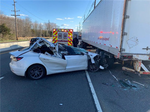 事故发生在3月29日清晨,这辆白色的2020年款特斯拉在1号公路右车道向北行驶,然后车开到了路肩,撞上了一辆抛锚的2005款牵引拖车Freightliner,一半车身冲进了拖车底部。美国汽车安全机构表示,将收集特斯拉汽车和拖车在新泽西州相撞事故的信息。