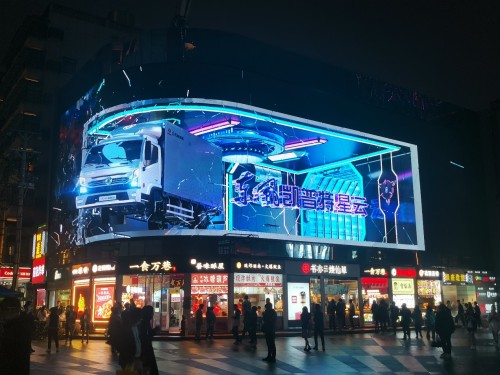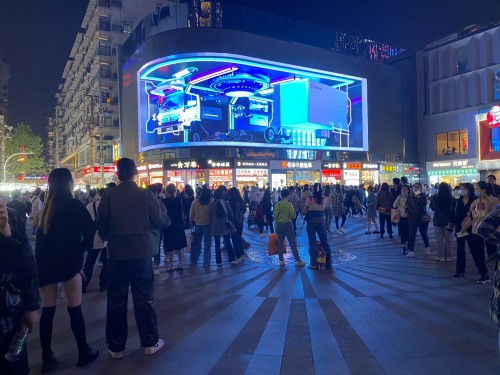 如今,这块屏幕又迎来了一次巅峰,路人们纷纷驻足观看,还有很多掏出手机拍照,还有一辆轻卡“撞碎”玻璃,冲出屏幕,撞进人们的内心,效果极其逼真。