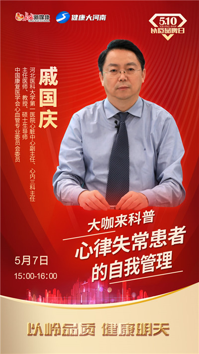 5月7日,张仲景大药房携手以岭药业共同邀请河北医科大学第一医院心内三科主任、主任医师戚国庆教授通过健康大河南客户端、长城新媒体进行直播,就心律失常的相关知识为大家进行了科普,帮助大家充分认识心律失常,解决心律失常带来的困扰。
