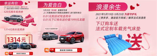近日,奇瑞捷途正式推出以“一见倾心 惠享不停—捷途送你爱的表白式”为主题的专属权益活动,让您在“520”这个特殊的节日里,为心爱的TA献上一份充满爱意的礼物。据悉,此次活动不仅线上线下权益多多,更有1314元购车抵用券、直播下订专属好礼相送, 具体福利如下: