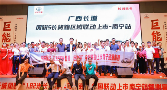 近日,风骏5长货箱皮卡在广西、湖北、湖南、河南、山东等全国各地联动上市,各地经销商、客户与长城皮卡欢聚一堂,共同鉴证风骏5长货箱的超强装载力,为广大用户创富带来全新选择。