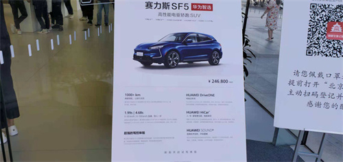 目前华为门店只负责赛力斯SF5的试驾体验和销售业务,车辆的交付、售后维修保养等环节,由赛力斯用户体验店的专业人士负责。“客户到赛力斯体验门店提车之后,华为的销售人员会为客户建立一个微信群,里面有华为的销售、赛力斯体验店的售后服务人员,两者为客户提供24小时售后服务,随叫随到。”