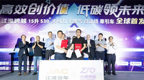 2021年6月18日,以“高效创价值 低碳领未来”为主题的江淮跨越15升530+马力自动挡天然气牵引车全球首发仪式在合肥隆重举行,本次活动同时在西安、榆林、重庆、吴忠等8大分会场同享盛举,来自江淮汽车、中通快递、中通快运、安能物流、康明斯动力、米其林轮胎等行业相关合作伙伴、新闻媒体、各地经销商以及忠实用户共同见证了这一历史时刻。