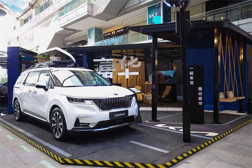 现场展台融入东风悦达起亚焕新的形象,以模块化空间将全新的LOGO分拆重组,咖啡互动、办公场景等组成品质商务空间,迷你高尔夫、蓝幕留影等组成美好家庭空间,并以第四代嘉华连接多种沉浸式生活场景,高度诠释了第四代嘉华“宜商宜家”的产品属性。公众在现场参与互动,并分享至朋友圈即可获得惊喜试驾、盲盒等超燃大礼。