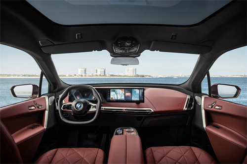 车内物理按键数量减少了约50%,首次搭载一体式悬浮曲面屏,12.3英寸的仪表盘与14.9英寸的触摸式中央显示屏合二为一,显示屏朝驾驶员方向倾斜约6度,这是宝马经典的“驾驶者导向”内饰设计理念的现代演绎。“Shy Tech”隐形科技也是BMW iX设计的一大亮点,经过巧妙部署,只在实际需要时才现身。隐藏在视线之外的音箱、造型精美的通风口、隐形红外线升温功能等,都展现了“Shy Tech”隐形科技以人为本的设计理念,带来更加惬意舒适的乘坐体验和享受。