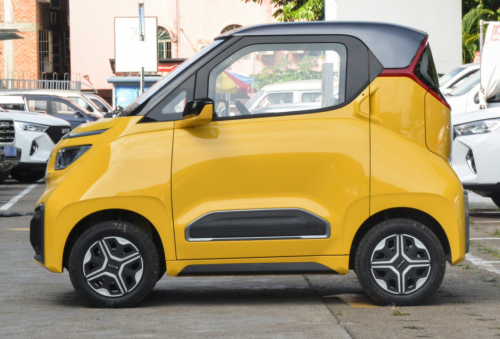 侧面部分,Nano EV依旧采用了犀利的线条勾勒,轮眉特别突出,肌肉感很清晰。熏黑的的A柱、双拼后视镜,以及倾斜的车头设计,让Nano EV看起来宛如战斗机一样,很有攻击性。而在车身尺寸方面,常规版Nano EV长宽高分别为2497/1526/1616mm,轴距为1600mm,小巧车身的使得驾乘变得十分灵巧,便于停车、通勤,即便是车技小白,也能沉浸于那种自由随心的驾驶体验。