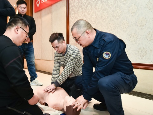 心肺复苏、AED除颤仪、海姆立克等急救方法培训中,手把手指导全体学员逐一进行练习,确保人人过关。