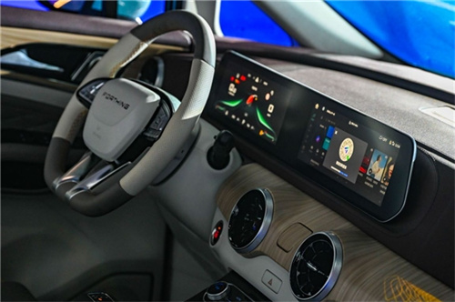 作为家用车,在舒适上风行游艇打磨得非常细致。进入车内,我们首先看到的是软质材料包裹的中控台,搭载着双10.25英寸智慧双联屏,大面积灰色与木纹饰感完美匹配,营造出堪比游艇的高级感。权杖式挡把,质感高级;更有巨幕大尺寸全景天窗,优质的采光,让车内空间显得更加通透。