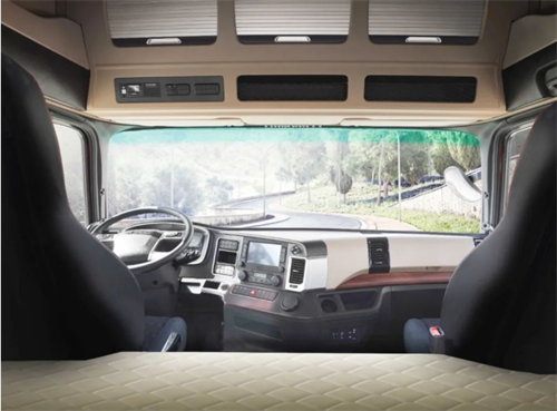 受防疫政策影响,卡友吃住行成了巨大挑战。为提升驾驶舒适性,A5X搭载了2350mm行业最宽驾驶室、下卧铺宽度650mm、旋转座椅大卧铺1050/mm/车内340L顶柜储物空间,无论是在车上睡觉,还是吃饭,这款车的驾驶室空间都绰绰有余。除此之外,卡友还可以选装胎压监测、车道偏离、前碰撞预警系统、倒车影像等主动安全配置,一个人开车更有保障。