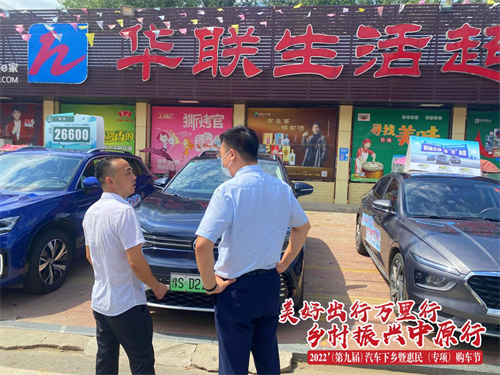 2022年7月9日至10日,“美好出行万里行 乡村振兴中原行”2022’(第九届)汽车下乡暨惠民(专项)购车节活动就来到固始,一汽-大众、北京现代共同联合河南广播电视台《车舞飞扬》栏目、河南县域融媒体产业联盟巡街走巷,走进乡镇,走到固始百姓的身边,带给他们汽车下乡的各项福利和优惠政策,各地乡镇消费者纷纷点赞,并留下了购车意愿。