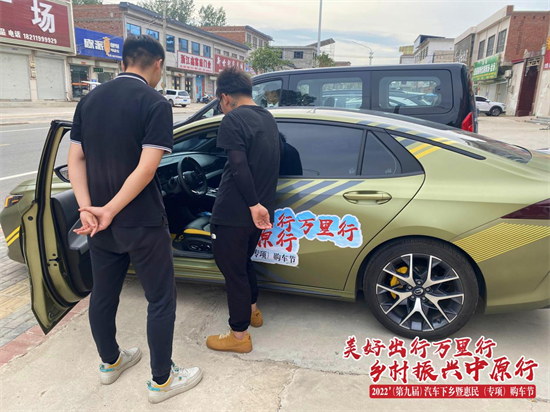 “美好出行万里行 乡村振兴中原行”2022’(第九届)汽车下乡暨惠民(专项)购车节活动自郑州中牟盛大启幕以来,我们深入县市,先后走进中牟县、伊川县、禹州市、固始县,让国家的购置税减半政策,品牌的各车型优惠政策,真正走到消费者的家门口。各地乡镇消费者在活动现场看车咨询,并表达了意愿和好评。