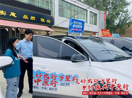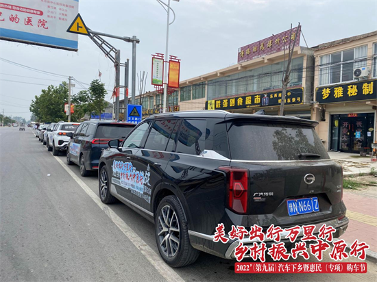 一汽大众、北京现代、广汽传祺共同联合河南广播电视台《车舞飞扬》栏目、河南县域融媒体产业联盟举办的“美好出行万里行 乡村振兴中原行”2022’(第九届)汽车下乡暨惠民(专项)购车节带着惠民政策深入县市,先后走进郭店镇、会亭镇、罗庄镇、桑堌乡、中峰乡、济阳镇、何营乡、太平镇、刘店集乡、王集乡、李集镇等乡镇,带给他们汽车下乡的各项福利和优惠政策,并详细解读购车客户用户的疑问和需求。各地乡镇消费者在活动现场看车咨询,并表达了购车意愿和活动好评。