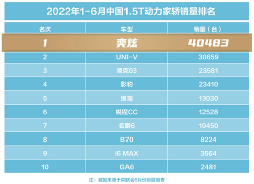 【 乘联会数据显示:奕炫家族在中国1.5T家轿销量排名第一 】