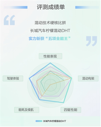 在近期主流汽车媒体关于混动技术对比实测中,长城汽车柠檬混动DHT从混动架构、性能表现、四驱性能、能耗及续航、驾驶体验五方面,以五科全优的硬核实力力压群雄,强势加冕“混动全能王”。