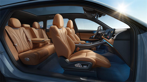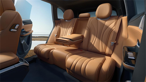 内饰则以优雅氛围和高品质细节,营造豪华休息室般温馨舒适的极享空间。环抱式设计的座舱、经典的暖棕配色与大面积覆盖的高品质皮革光泽交融,形成浑然天成般熟悉的高级氛围。