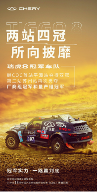 本站赛场上,瑞虎8冠军家族标配的超高强度钢一体化车身,在“肉搏战”中功不可没。瑞虎8冠军家族曾以84.8%的分数获得C-NCAP五星级安全认证,在高温、高原、高寒、高耐久性在内的“四高”极限环境下,验证累计可靠性行驶里程311万km,正是这种“过硬”的产品实力才能从容应对赛场的严酷环境,最终斩获佳绩。