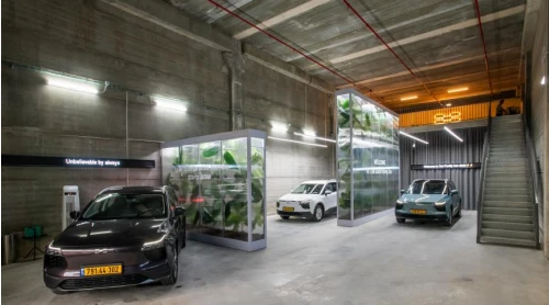 爱驰以色列交付中心综合占地面积约300平方米,投资约100万谢克尔建成。为给用户营造出开放、舒适,绿色环保的雅致氛围,该中心以绿植萦绕的工业灰度空间设计风格为主,并提供一个设有咖啡吧和俯瞰空间观景廊的等候区,整体环境舒适优美,用户在提车时可以随意取景拍摄。