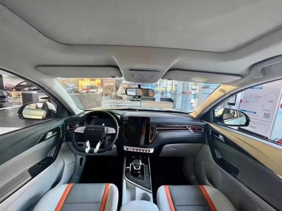 内饰方面,风行T5马赫版打造出了质感非凡的品质体验。新车中控区域采用悬浮分层式设计,功能分区明确,错落有致。内饰颜色以黑色为主色调,并加入了亮眼的橙色饰条点缀,颇具年轻时尚的气息。同时,典雅的天然木纹饰条以及铝制与镀铬的细节装饰,均刻画出精妙的匠造之心。24色氛围灯的加入,更进一步提升了内饰的年轻气息,打造出别样视觉享受。