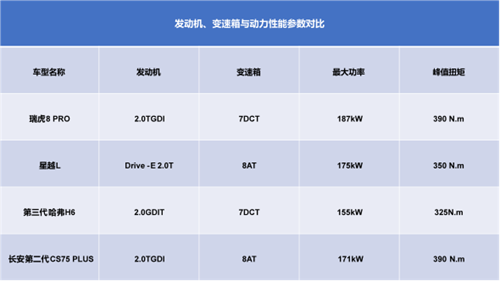 野钓出行对车辆的动力性能要求较高,我们结合这四款车的性能参数,进行一个直观比较。