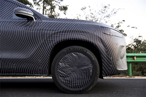 在车衣的严密包裹之下,很难看到其他的太多外观细节,车内设计就更难窥见。但就其目测的尺寸与宽体式车身来看,其内部空间应该十分充裕,再加上从图中可以看出,其C柱到D柱之间有着额外显眼的超长距离,或许这款车前、后排和后备箱的空间会超出一般期待值。