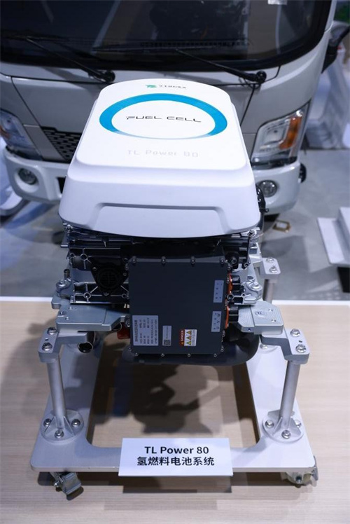第五届进博会展出的TL Power80,是继TL Power100后最新的商用氢燃料电池系统产品,具备高性能的同时,兼具可靠性和稳定性,系统寿命更是长达30000小时,远远领先于业内同期的水平。搭载了该系统的轻型卡车也同台亮相,作为与中国商用车厂商合作的成果,不久将会活跃在物流领域。