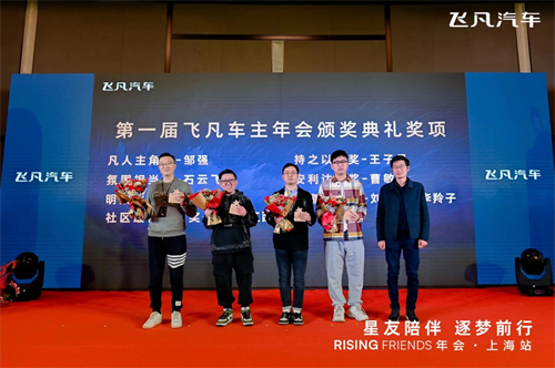 为感谢车主与合作伙伴对飞凡汽车一年来的支持,年会现场特别举行了颁奖仪式,分别向R7车主们颁发了凡人主角奖、持之以恒奖、氛围担当奖、安利达人奖、明察秋毫奖、共赢伙伴奖、社区最佳用户奖等7项大奖,分别代表了飞凡汽车与车主在不同领域的共创。值得一提的是,飞凡汽车用户运营中心负责人徐隽现场揭晓了第一届飞凡车主年度大奖——飞凡陪伴奖,他表示,这个奖项属于全体飞凡用户,正因为用户的坚定选择和始终陪伴,让飞凡汽车有了不断前行的动力。