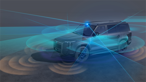 眼观全局,精准感知,极石01还是一台能征服更多复杂路况的车型。极石01标准智驾版享有L2+智能驾驶辅助系统,高阶智驾版具备城市NOA*、⾼速NOA*等功能的持续进化。在感知能力上,极石01高阶智驾搭载了2颗英伟达Orin-X芯片,总算力达到508 TOPS,配备了3颗禾赛激光雷达:顶部1颗128线激光雷达,两侧前翼子板安装了2颗等效120线纯固态侧向激光雷达。作为全球首款搭载纯固态激光雷达技术的量产车型,极石01水平探测角度可达到280度,侧向雷达的垂直视场角达到了75度,能够轻松支持户外远行时“智能探测”、“3D透明底盘”、“哨兵模式”。车内外合计12颗摄像头,5颗毫米波雷达,12个超声波传感器。将障碍物的感知由2D升级为3D,让每个越野小白都能变身高端玩家,带着家人由城市驶向更为广阔的远行天地。