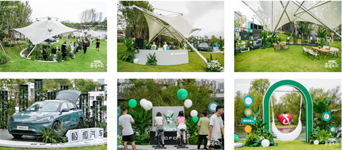 线下,抖音生活服务助力品牌占位露营场景。对用户而言,一场惬意露营,少不了一辆高效、舒适地穿越各种地形的座驾,拥有超长续航里程,能够没有焦虑地去想去的远方。在线下露营地,产品性能与露营细分需求的深度结合,让产品优势在实际场景体验中无形的传递。如通过颇具设计美感的后备箱陈列玩法,既吸引用户前来打卡拍照,也展示了超大的后备箱容积,呈现出轻松容纳露营所需、满足露营下不同生活场景需求的产品特点,在用户心中深深种下“自带露营体质”的心智印象。可以说,露营场景下,用户得以在实际场景中,体验阿尔法S森林版的产品性能,感受新品背后所倡导的松弛、自然的森系生活主张。