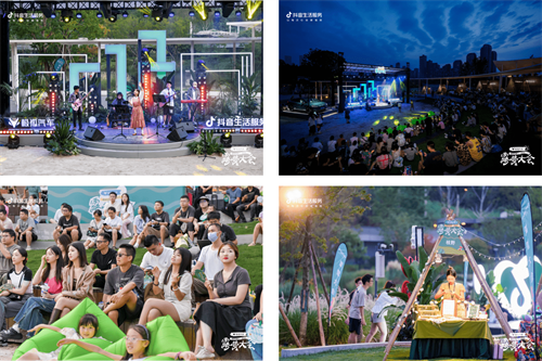 丰富多样的活动环节也同样吸引了众多用户驻足围观,让现场用户一次性体验了露营诸多可能。30+展位组成了热闹的露营市集,身处其中,不仅能在手工摊位上DIY专属自己的浪漫,在美食摊位上逛吃打卡爆款饮品,还能在抖音文创摊位选购心仪飞盘、挑战户外运动小游戏,让人拥有一站式新体验。同时,“无live,不夏天”的生活理念也在这里实现,本地南街音乐厂牌乐队小小茉莉、米老鼠、饼干,以及抖音音乐人石佳嘉stone等齐聚舞台,既有文艺派青睐的悠扬小调,也有摇滚派最爱的热烈节拍,大家挥动双臂、尽情享受,在嗨玩氛围中与音乐撞个满怀。