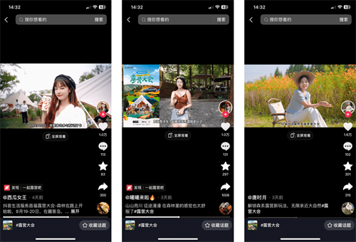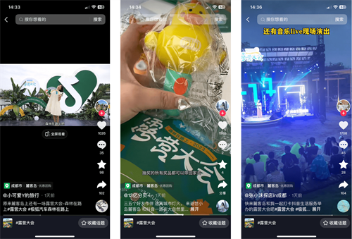 本场露营大会中,抖音生活服务也集结了来自全国各地的文旅达人,产出露营地评测+新车产品植入的体验式内容。为了最大化传达“森系生活”的产品心智,达人摒弃了传统植入方式,深入露营地场景,在体验式内容中呈现产品核心信息,从而达成更佳的兴趣种草和客群转化。截止日前,抖音话题#露营大会#播放量达6.4亿,来自不同城市的达人为品牌带来了多圈层、多地域的内容辐射力。