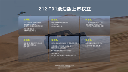 212 T01柴油版的上市,从来不是配置参数与权益的简单叠加,而把“用户需求”真正落地。212品牌始终以“用户当先”的初心,落实到真正成为用户可感知的体验里。这种真诚的态度,比任何性能参数、营销话术都更能打动人心。毕竟对越野爱好者来说,一辆能带着自己安全探索未知,还始终把自己的需求放在心上的车,才是真正的“可靠伙伴”。