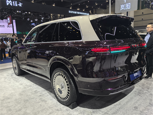 侧面线条经过千次打磨,如同山脉起伏般流畅自然,多维曲面让光影在车身表面滑动时宛若云雾环绕山峰,既优化了空气动力学性能,又消解了全尺寸 SUV 的笨重感。22 寸 “天地之镜” 轮毂堪称点睛之笔,电镀工艺搭配悬浮徽标设计,行驶时始终保持水平的中心标识如山中明月,轮毂反射的环境光影则恰似山海流动,让动态行驶成为移动的美学盛宴。