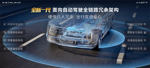 启境GT7拥有同级唯一面向自动驾驶的全链路冗余架构,涵盖感知、计算、供电、转向、制动、通讯、定位及HMI交互八大核心系统的双重冗余设计。即便在极端小概率的硬件失效情况下,车辆仍具备自动靠边停车的Plan B。得益于前瞻硬件预埋,让启境GT7拥有了持续进化能力。待相关法规体系完善,即可通过OTA软件升级,解锁更高阶智驾体验,真正做到常用常新。