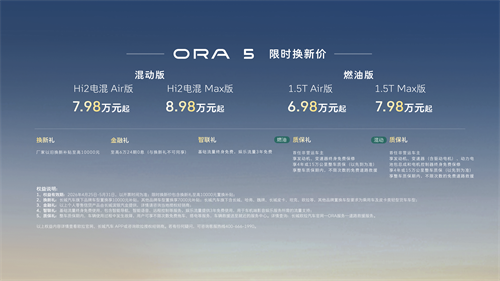 当前位置:大河车网 > 长城欧拉5混动版/燃油版北京车展上市,建议零售价7.98万起/限时换新价6.98万元起 4月25日,长城欧拉在第十九届北京国际汽车展览会举办以“求实”为主题的品牌发布会。长城欧拉5混动版和长城欧拉5燃油版正式上市。其中,欧拉5混动版建议零售价8.98万元起,欧拉5燃油版建议零售价7.98万元起。现在下订更可享包含换新礼、金融礼、智联礼、质保礼在内的四重好礼,叠加上市权益后,欧拉5混动版限时换新价7.98万元起,欧拉5燃油版限时换新价6.98万元起。