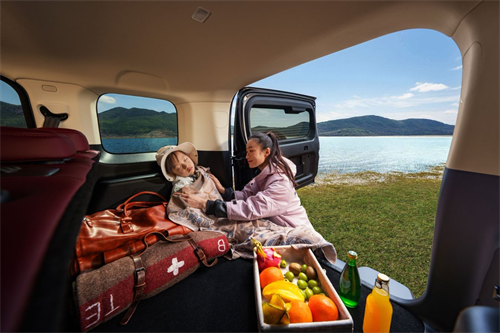 5 座版车型791L 超大后备厢容积,搭配45 处人性化储物空间从容包揽全家所需,玩具、户外帐篷、露营装备皆可分区收纳、整齐规整,告别杂乱拥挤。后排座椅纯平放倒,瞬间变身为宽敞舒适的“移动大床房”,露营休憩、短途午休、临时歇脚主打一个自在惬意。内饰延续高端质感,熔岩红配色搭配软包门护板,触感温润亲肤,让孩子在后排自在玩耍、倚靠、触碰,全程不用担心磕碰受伤,全家出行更舒心。