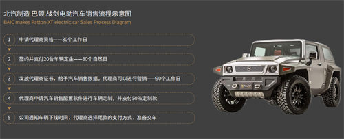乔治巴顿战剑电动车代理制则是在普通代理制的基础上进行了优化。签约代理商限定20台销售指标,交付30万订金即可有机会获取代理权,不限区域,不用建店,全国巡游式线下推广线上订单,最大化降低代理商的经营成本。2022年5月联车会与乔治巴顿中国区签署战略合作协议,授权联车会在中国区内招募代理商。而之所以与联车会战略合作,则是看重联车会独有的智能化SAAS销售系统,从拓客引流到广告推广、销售管理、社群裂变等智慧卖车数字化工具,为每个代理商赋予单独的销售运营系统,信息同步、数据协同、后台统一管理,降低分销成本、管控价格体系、消费反馈及时等,创造无缝的端到端体验,连接数据和消费触点。
