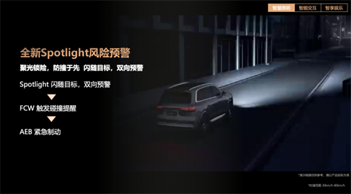 比如,当系统检测到有行人或非机动车突然闯入,存在碰撞风险时,“全新Spotlight风险预警”功能会与华为乾崑智驾ADS联动,用一束高亮光精准锁定目标并快速闪烁,实现车对人的“双向预警”,将被动警示升级为主动安全干预,有效保障驾驶员与行人的安全。